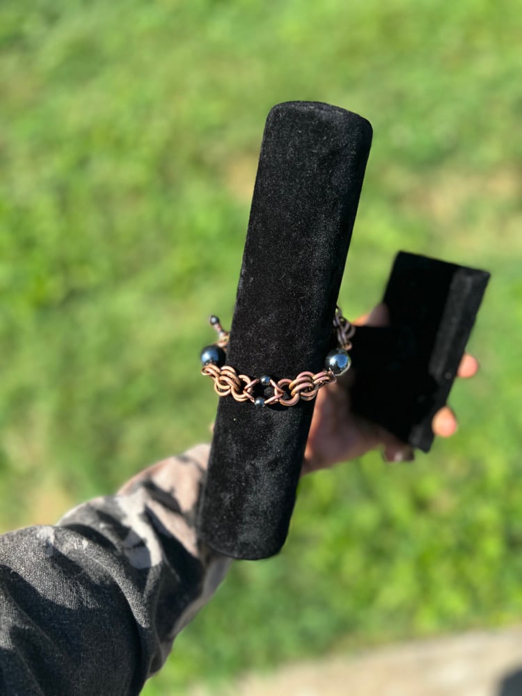 HEMATITE X 2ON2 CHAIN LINK BALANCE BAR BRACELET